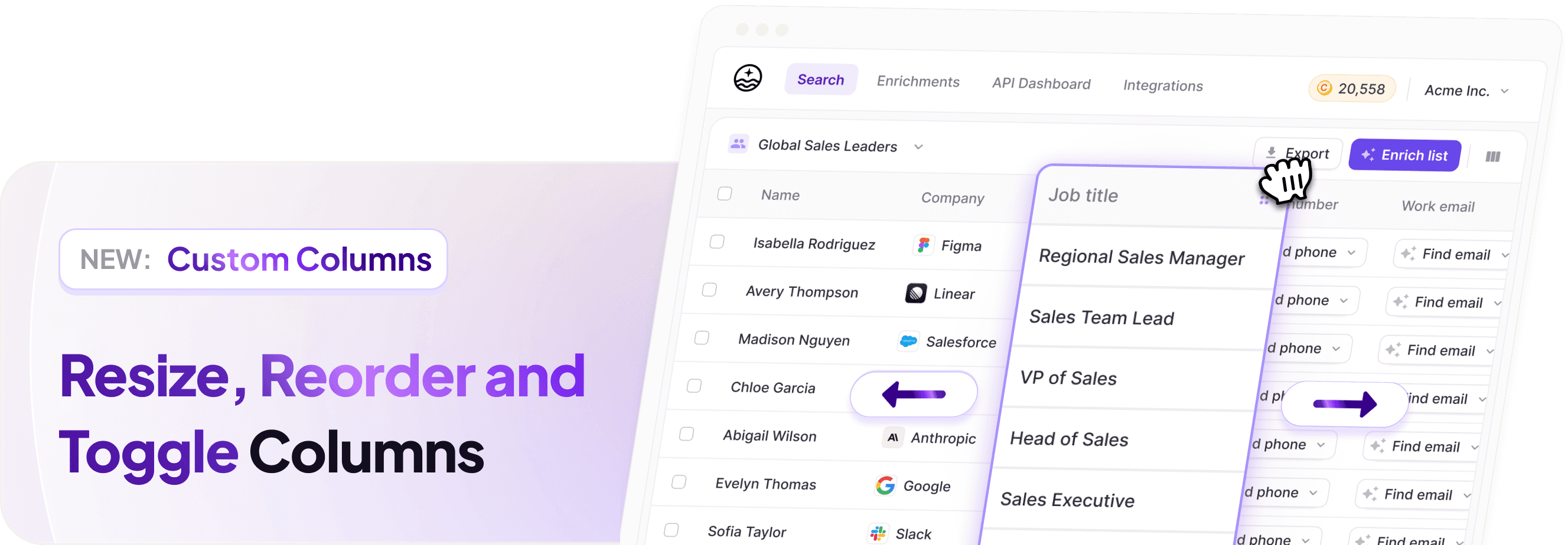 Your column preferences are saved, so your layout persists across sessions. This update makes it easier to customize your data view and streamline your workflow in FullEnrich.