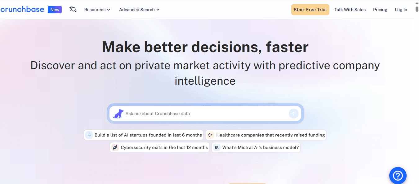 Crunchbase Scout: A natural-language AI search tool that allows users to find companies by describing a market trend or a specific competitive landscape.