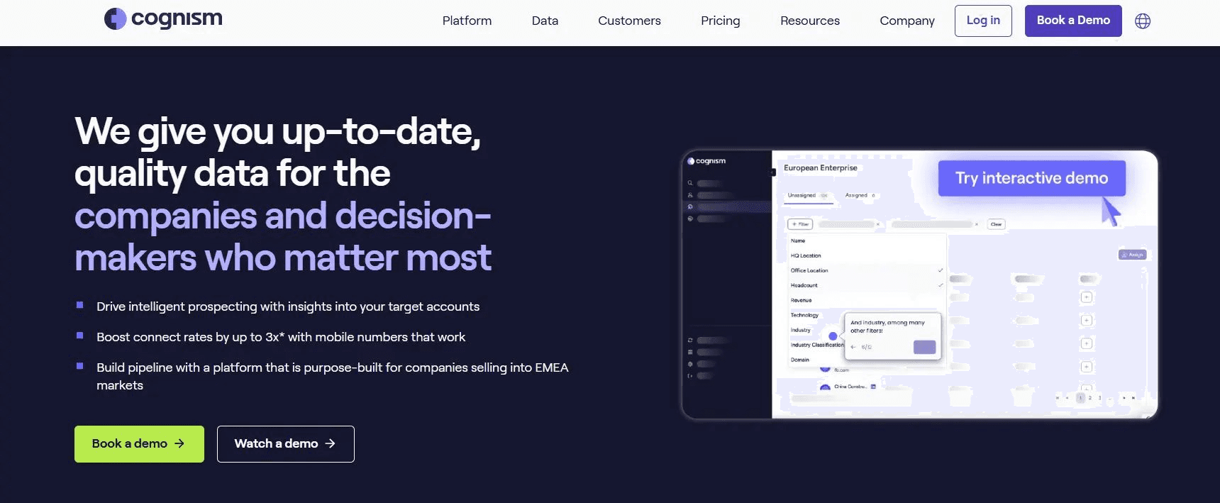 Cognism has built its reputation as the most reliable source of European data, particularly for phone numbers. Instead of just scraping the web and hoping for the best, they use a "Diamond Data" approach, in which a human team manually calls and verifies mobile numbers to ensure they are active. This significantly reduces the time sales reps spend talking to gatekeepers or hitting dead ends.